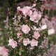 крупные, розовые с бордовыми прожилками, махровые. Цветёт обильно с июля по
