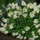 диаметром около 20 см образованные из плоских белых цветов, размером в 3 см. Растет быстро, давая