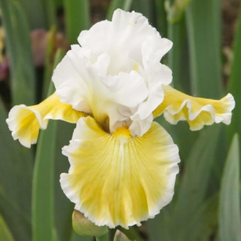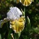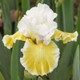 пастельные-лимонно-жёлтые фолы с чёткой белой каймой. Бородка золотистая,