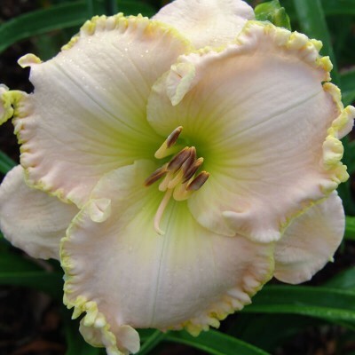 изумительно нежных пастельных тонах. Цветки кремово-розовые с зелёным горлом и